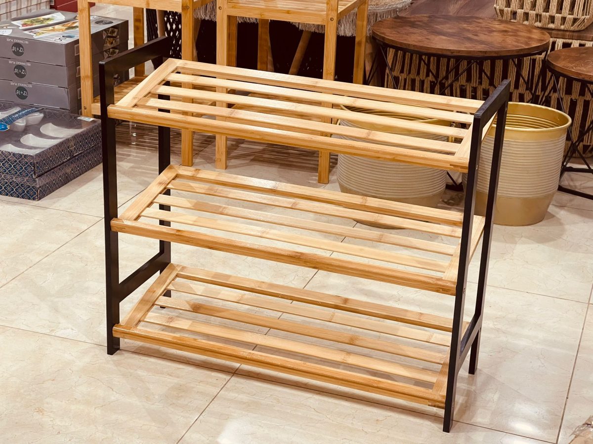 ستاند / رفوف احذية خشب بامبو ( رف مايل )