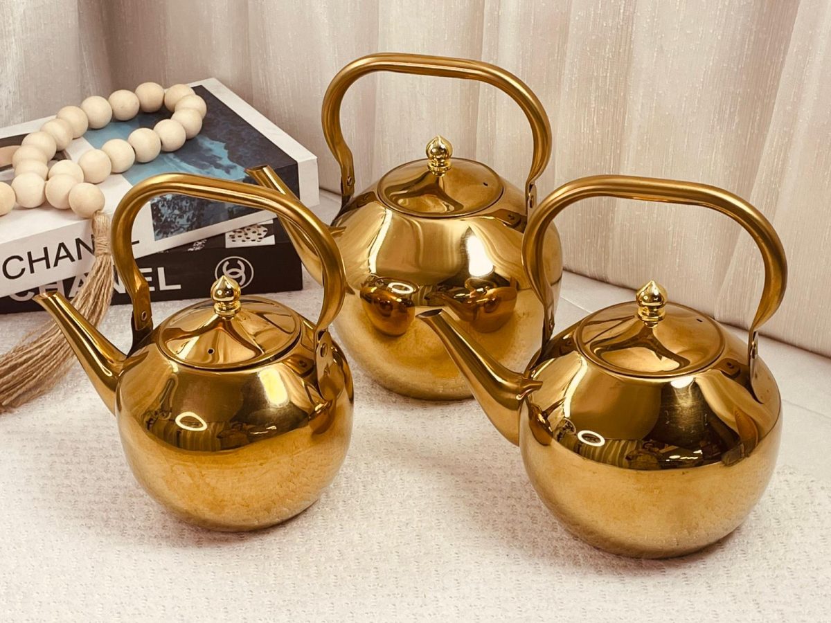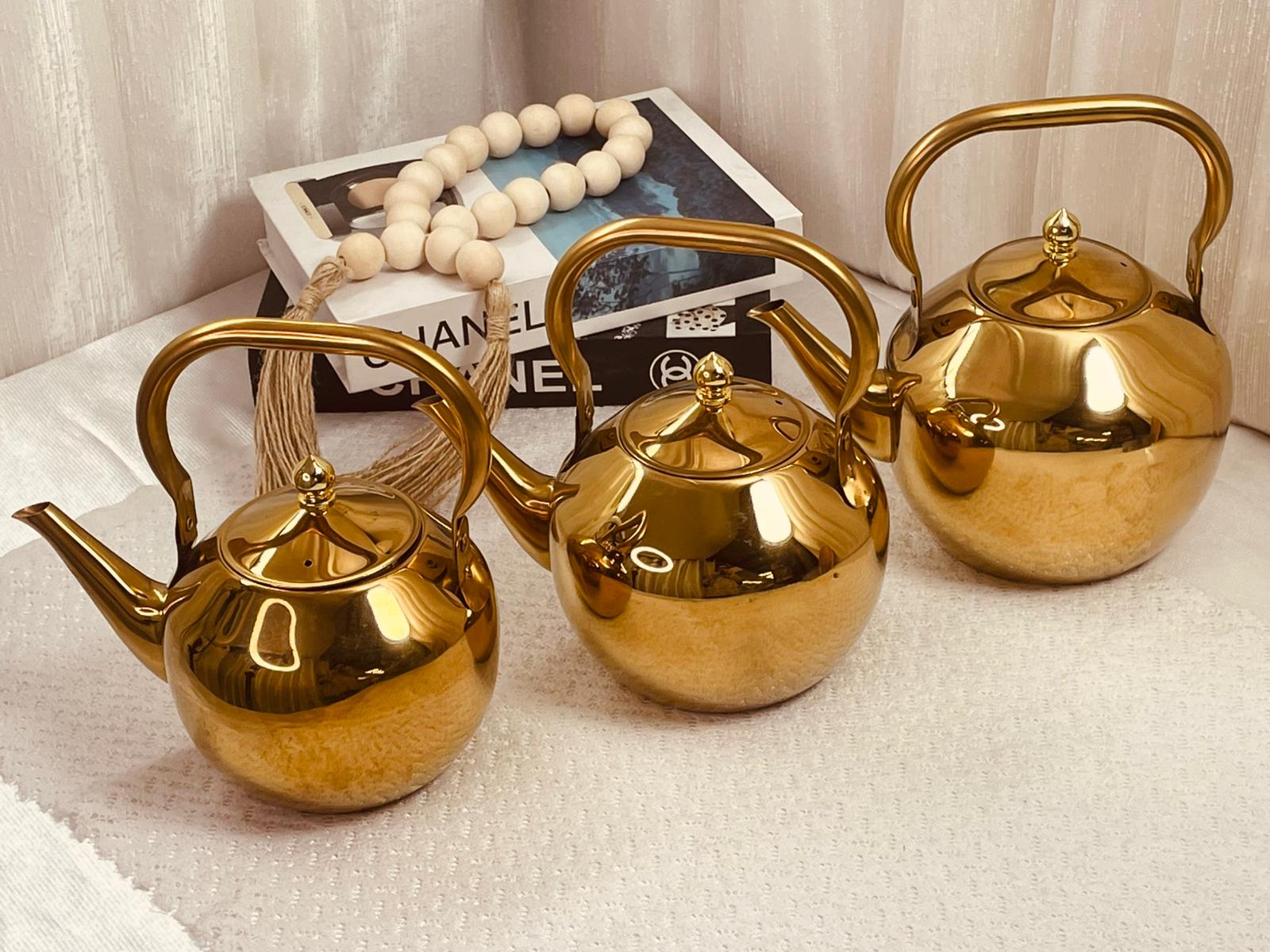 ابريق شاي ذهبي يد معدن (احجام مختلفة في الوصف)