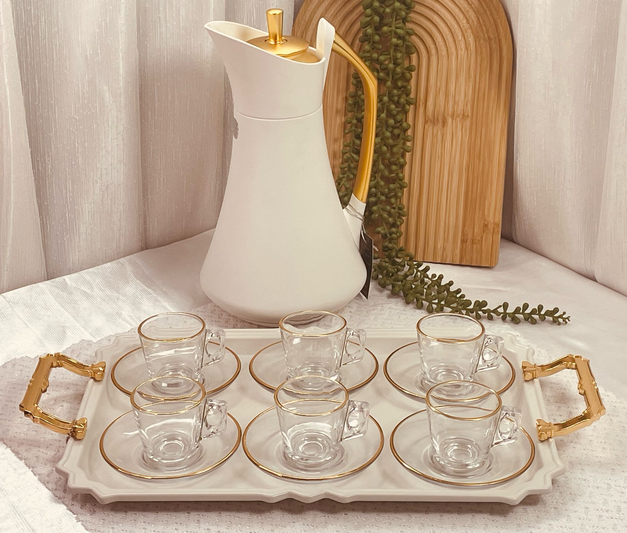 طقم فناجين قهوة حز ذهبي 6+6 ب 35 ش