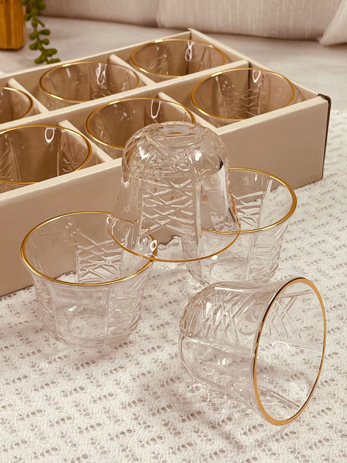 طقم فناجين قهوة سادة حز ذهبي عدد 12
