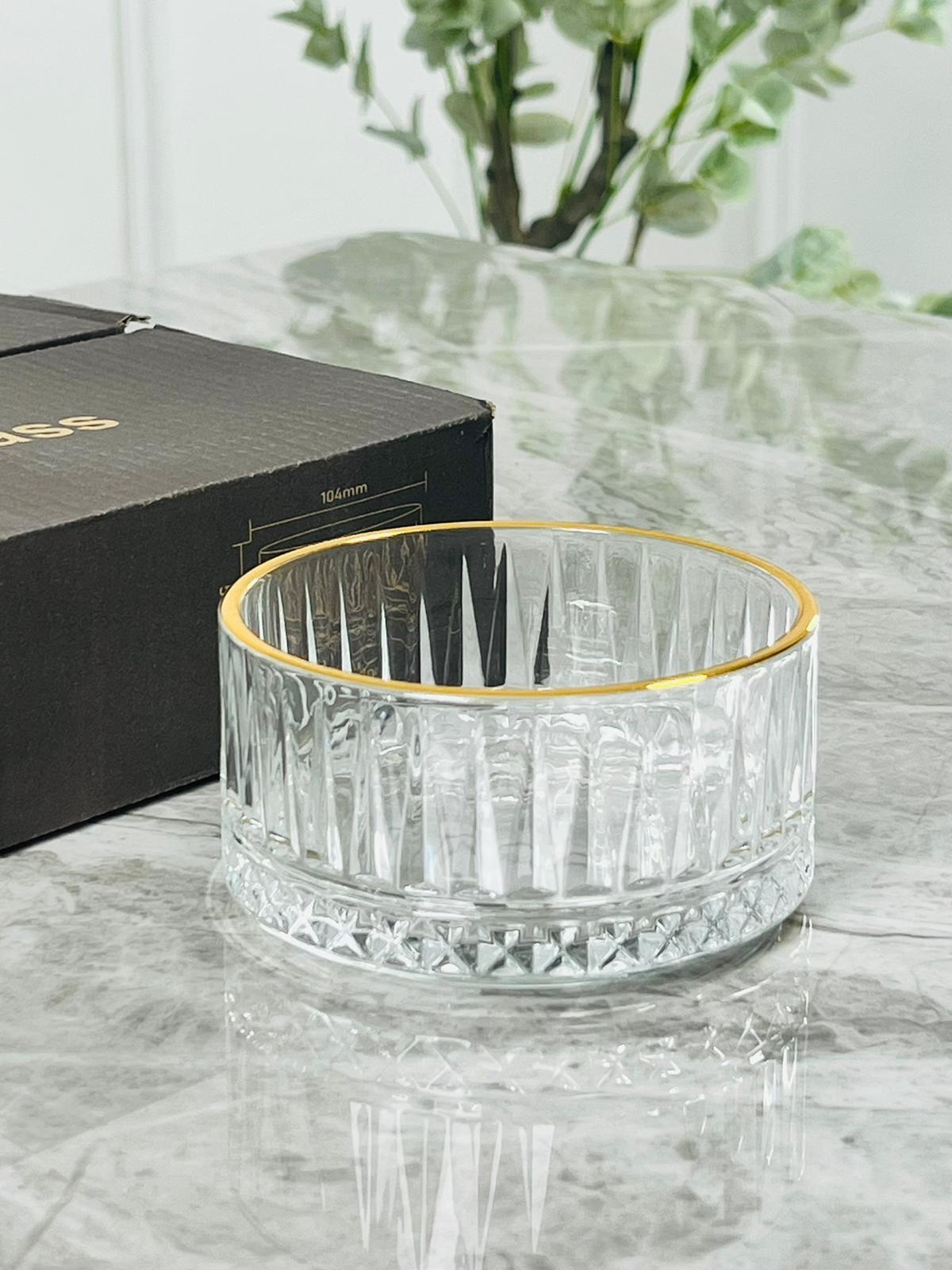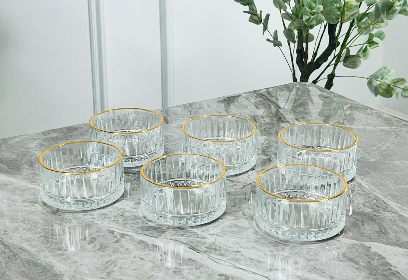 طقم 6 صحون مكسرات شفاف حز ذهبي